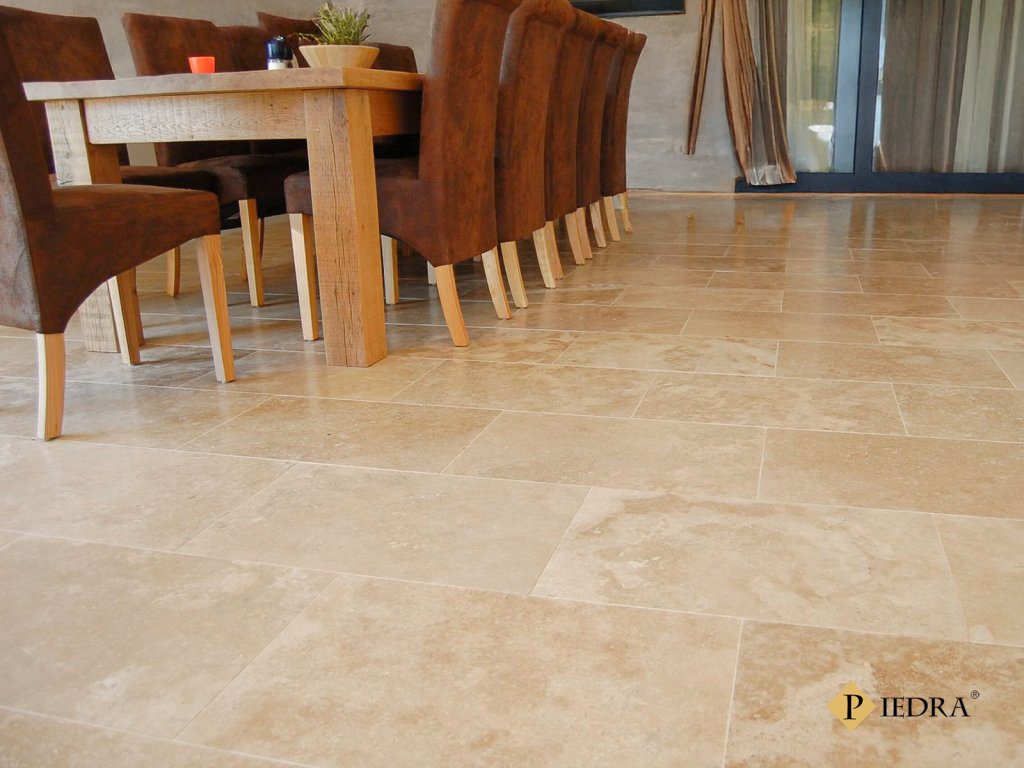 W tej odmianie pory naturalnie występujące w strukturze trawertynu zostały starannie wypełnione fugą cementową w kolorze zbliżonym do kamienia. Dzięki temu powierzchnia jest gładka, bardziej jednolita i łatwiejsza w utrzymaniu czystości, przy jednoczesnym zachowaniu charakteru naturalnego materiału.