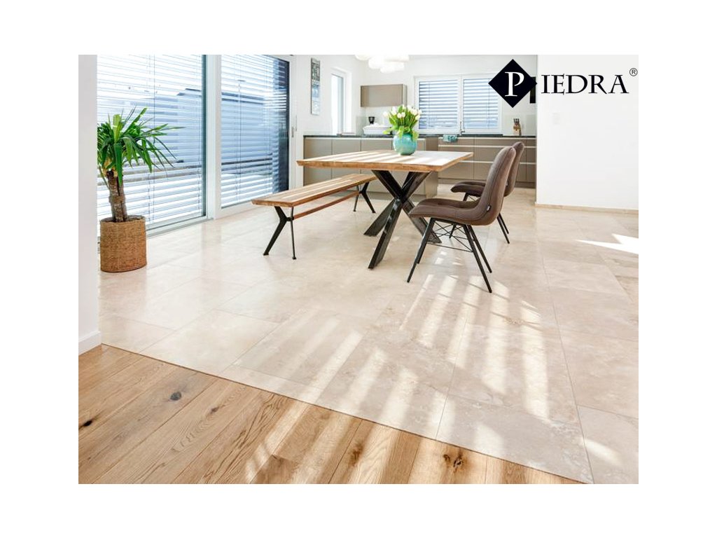 Płytki z naturalnego trawertynu Light,wypełaniany, szlifowana – matowa, 61 x 40,6 x 1,2 cm.