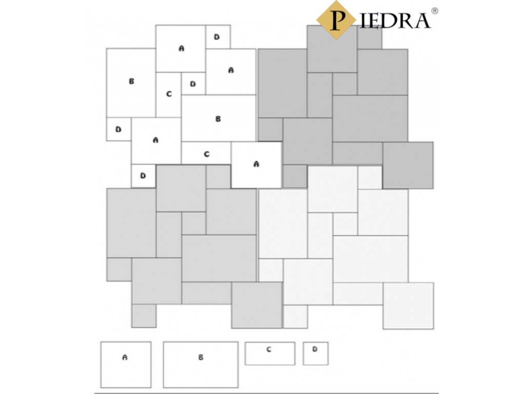 Produkt dostarczany jest w zestawie o powierzchni 0,74 m², zawierającym wszystkie cztery formaty charakterystyczne dla francuskiego stylu układania.